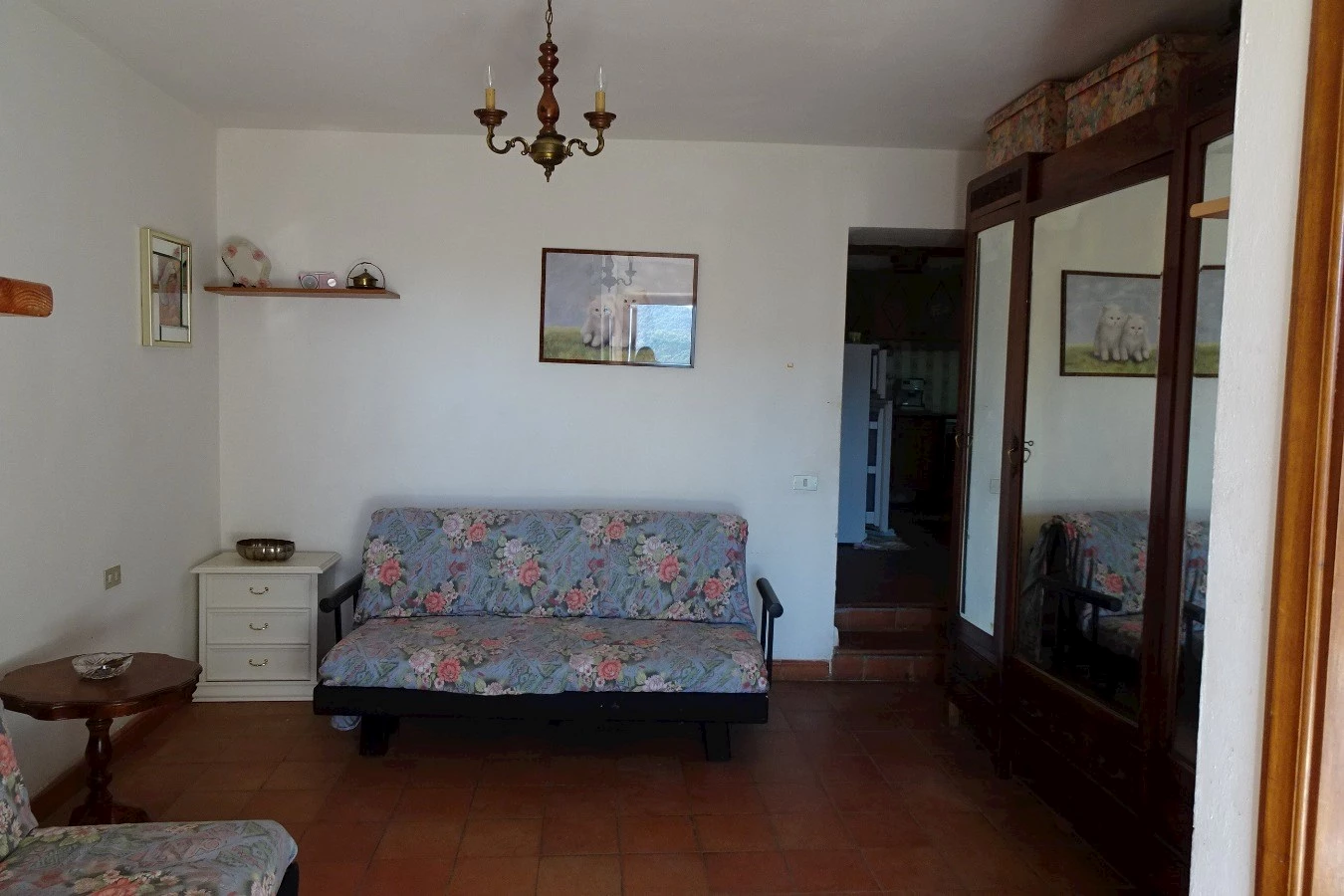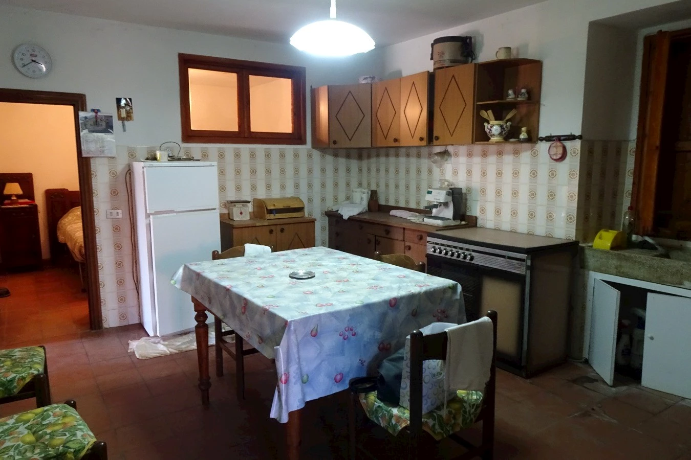 ingresso da loggiato a comune, cucina con camino, camera e sala con balcone , accesso da scala a chiocciola interna alla cantinetta. A soli 15 mt.dalla casa, Annesso terreno pianeggiante di circa mq.600 !!