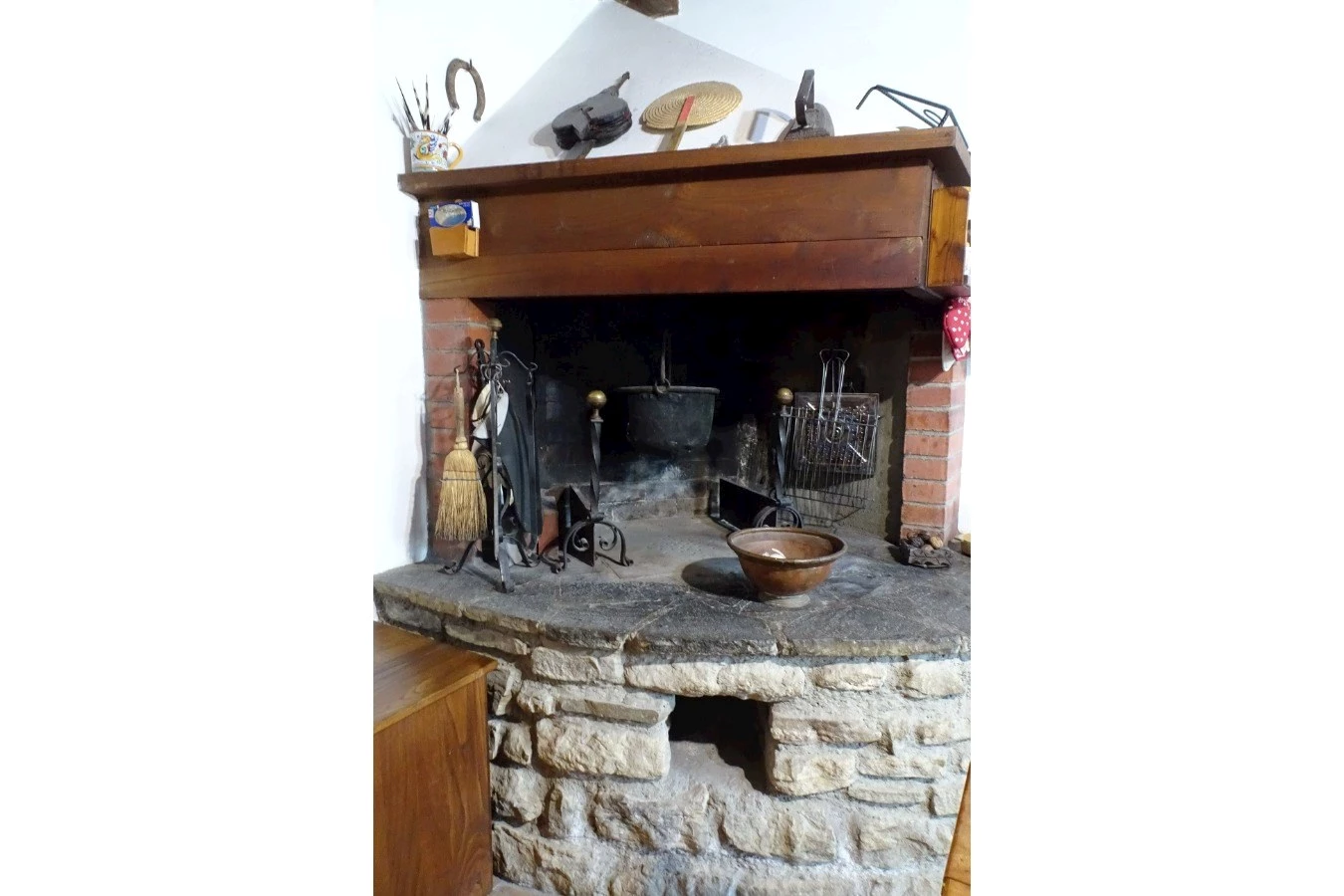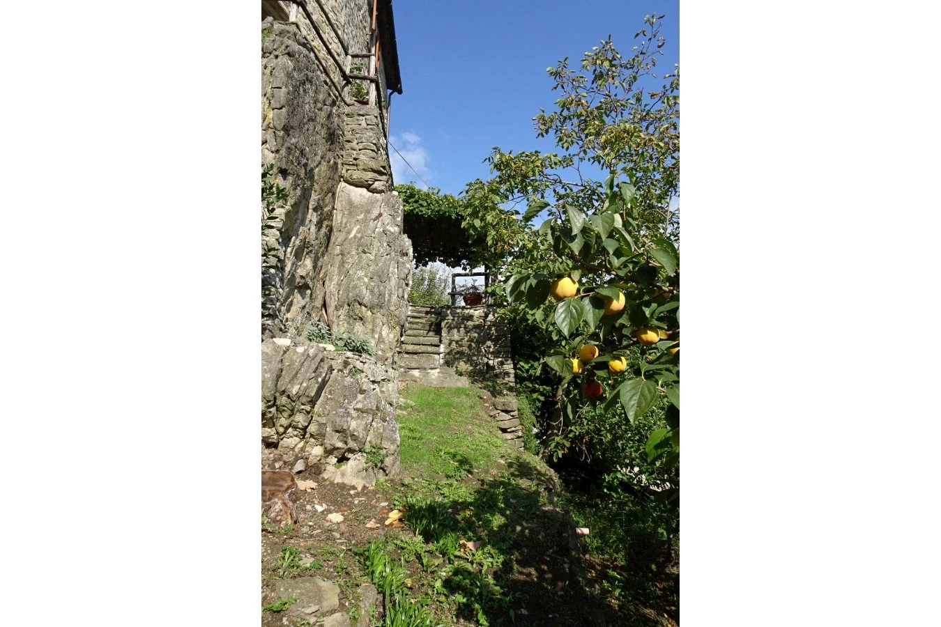 Al piano sottostrada ampia taverna/cucina con camino, cantine e locale caldaia oltre al piano superiore disimpegno, tre camere, bagno e saletta con camino, oltre resede terrazzato e piccolo orto