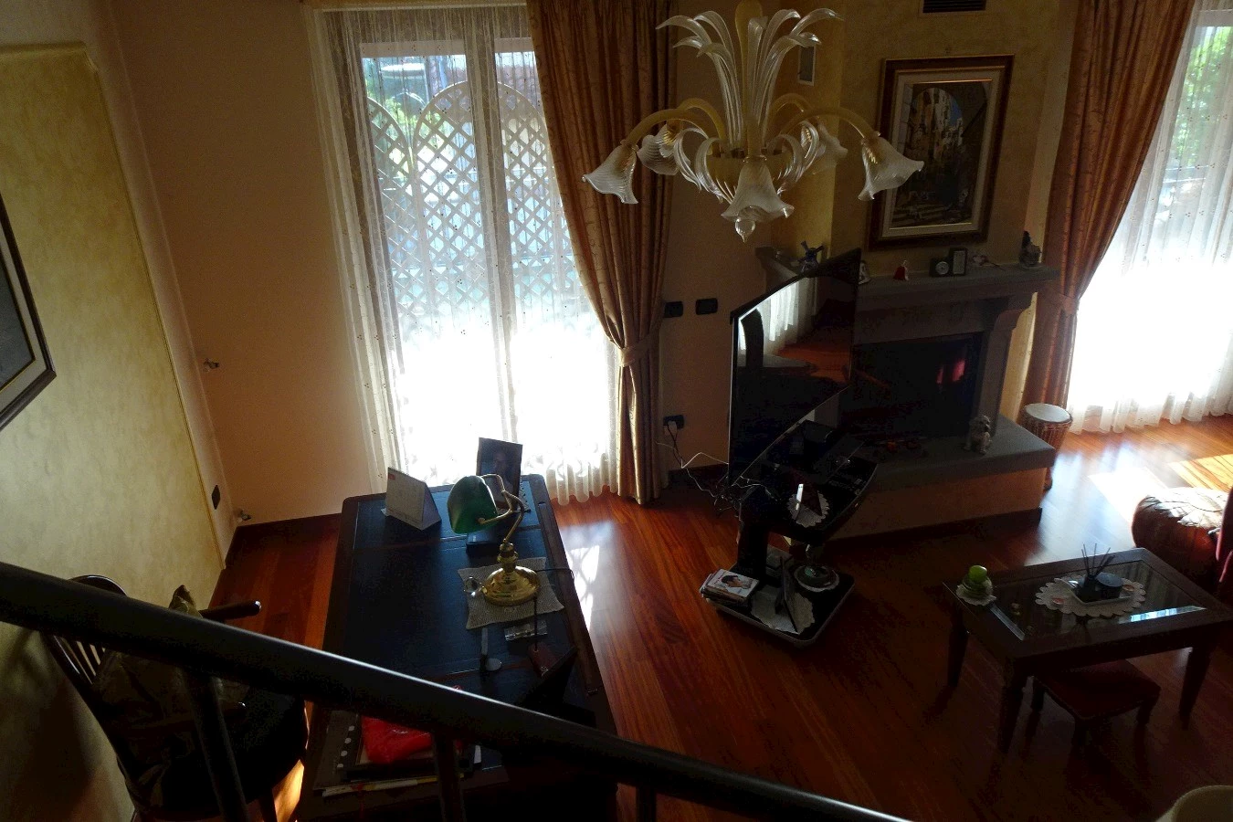 Piano terra accesso da scala esterna esclusiva con ampia loggia, soggiorno con camino, cucina, bagno e piccolo loggiato sul resede privato , al piano secondo disimpegno, tre camere con balcone e bagno. Il tutto integrato da resede pertinenziale esclusivo di mq. 300 circa